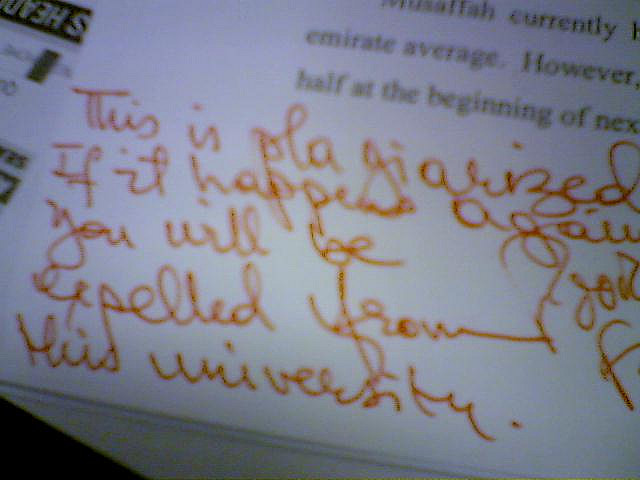 L’école, avec son socle de connaissances, encourage la rétention de notions et d’idées venues du passé. De là, la valeur accordée à la pensée originale de l’élève est subordonnée à celle d’un Spinoza ou d’un Kant. L’école, c’est dans une large mesure le règne de la pensée d’emprunt. Le plagiat y est donc, sinon légal, du moins « aligné idéologiquement ». Lorsque j’ai expliqué à ma fille qu’il vaudrait mieux qu’elle réécrive le passage de Wikipédia dans ses propres termes, elle m’a répondu : « Pourquoi ? C’est beaucoup mieux écrit ici ! »