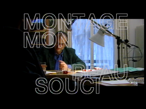 Ce sont ces écrits qui se superposent à l’image qui donnent un tempo à sa réflexion, qu’il s’agisse d’inventions de sa part comme « Montage, mon beau souci », ou de reprises tel « La monnaie de l’absolue », qui est aussi le titre d’un ouvrage d’André Malraux8 .