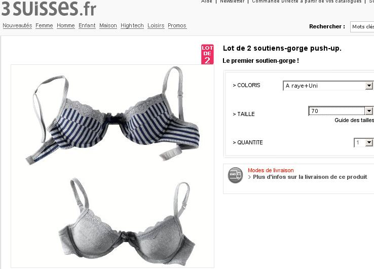 En terme d’images, elle insiste également sur le fait qu’on ne voit pas de petites filles porter ces sous-vêtements, que rien n’est “suggéré en visuel” et qu’ils ne sont pas “hyper-pigeonnants“. Il n’empêche : suite à nos appels, La Redoute et les 3 Suisses ont tous deux retiré de leurs sites web les modèles de soutiens-gorge rembourrés de taille 10 ans/70A.