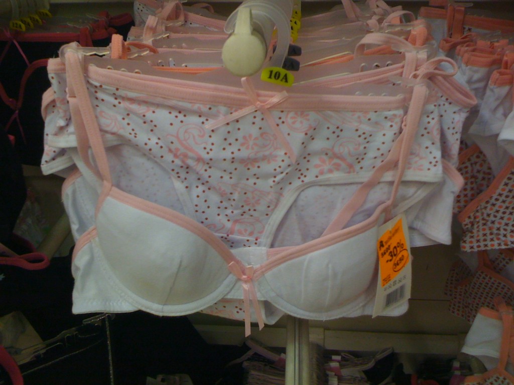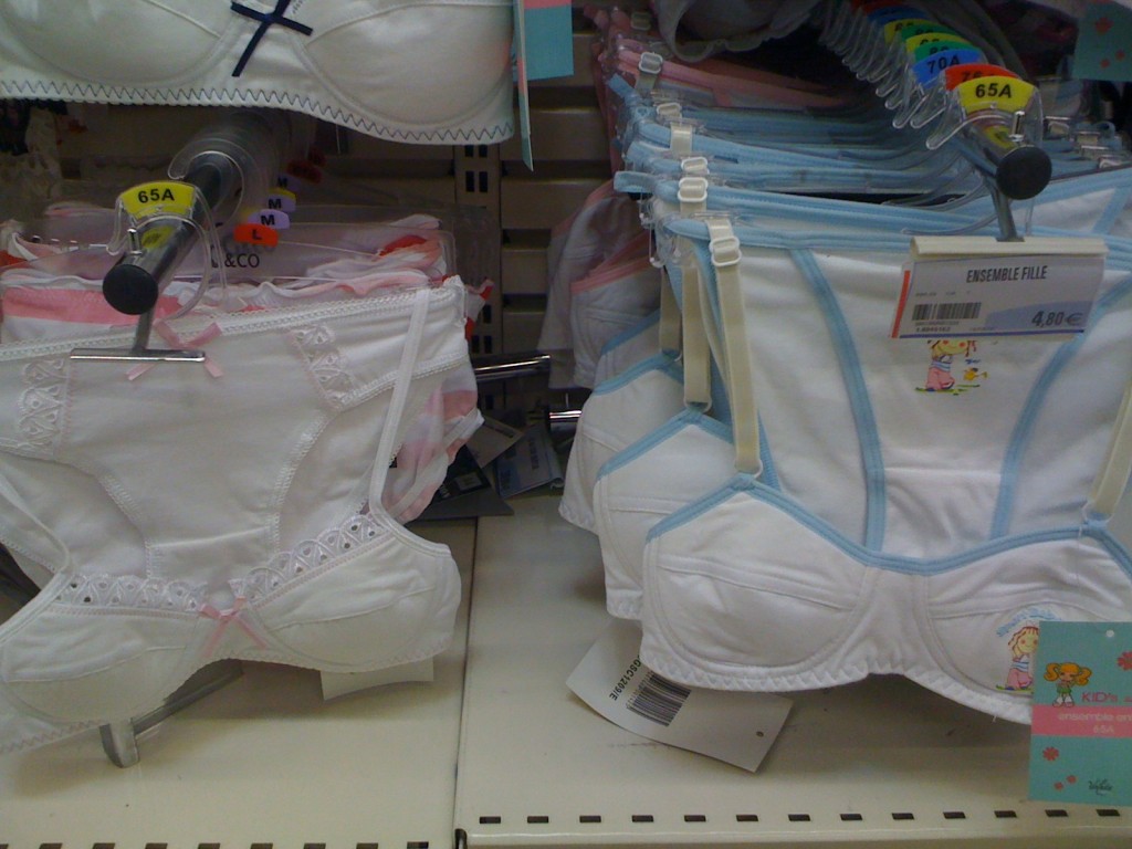 La tâche fut quelque peu ardue : un homme un peu barbu, frôlant la quarantaine, en train de photographier, discrètement, des soutiens-gorge pour petites filles… il me fallait être très prudent, et braver tous les dangers incarnés par ces vigiles, vendeuses, mamans et autres clients qui auraient pu mal interpréter ce pour quoi je rôdais ainsi dans les rayons lingeries pour enfants.
