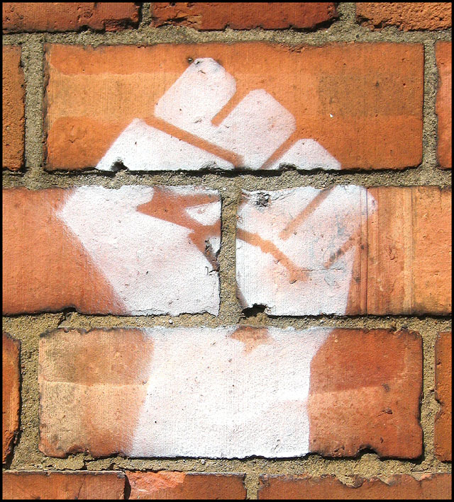 Pendant deux ans, OTPOR lutte contre Milosevic. Premier ingrédient : se doter d’un logo très graphique que tout le monde reconnaît d’un coup d’oeil. Nenad Petrovic, connu sous le pseudo de Duda, propose le poing serré sur son fond noir. Banco. Il est graphique, facile à reproduire sur les murs avec des pochoirs, symbolise l’activisme en faisant un pied de nez aux mouvements fascistes qui tendent le bras et la main. Très efficace, donc. Le mouvement croît rapidement. En témoigne la répression qui s’abat sur lui. Srdja Popovic est arrêté le 15 décembre 1998 pendant quelques heures. La nouvelle se répand très vite via Internet. Les organisations de défense des droits humains font pression et obtiennent sa libération. La force du réseau, déjà .