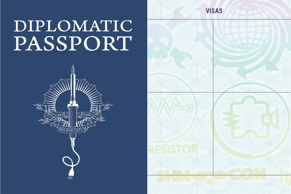 Mitch Altman, figure du milieu qui a créé Noisebridge, et voyageur inlassable, a même créé un passeport hacker qui “ressemble beaucoup aux passeports américains, sauf qu’il n’y a pas besoin d’empreintes digitales.” Il explique les raisons pour lesquelles il a initié ce document :
