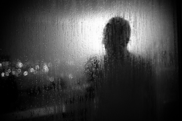 En fait j’étais placé devant la fenêtre. Juste avant, Abdou m’avait montré la vue sur la mosquée. J’essayais de la voir pendant qu’il me parlait. Ce n’était pas évident, de nuit avec tous les reflets des lumières et la buée. Abdou se tenait derrière moi, en train de se déplacer, je pense vers la cuisine. C’est à ce moment là que j’ai vu son ombre-reflet sur la vitre. Et j’ai déclenché.
