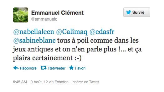 Avec l’aide curationnelle de Calimaq, notre chroniqueur spécialiste ès #copyrightmadness, qui a consacré un pearltree au sujet, Pierre Alonso, @nabellaleen. Les dates correspondent à la date de publication des articles-sources, ce qui était le plus simple, et nous nous sommes restreints aux histoires glanées pendant les JO, du 27 au 12 août.