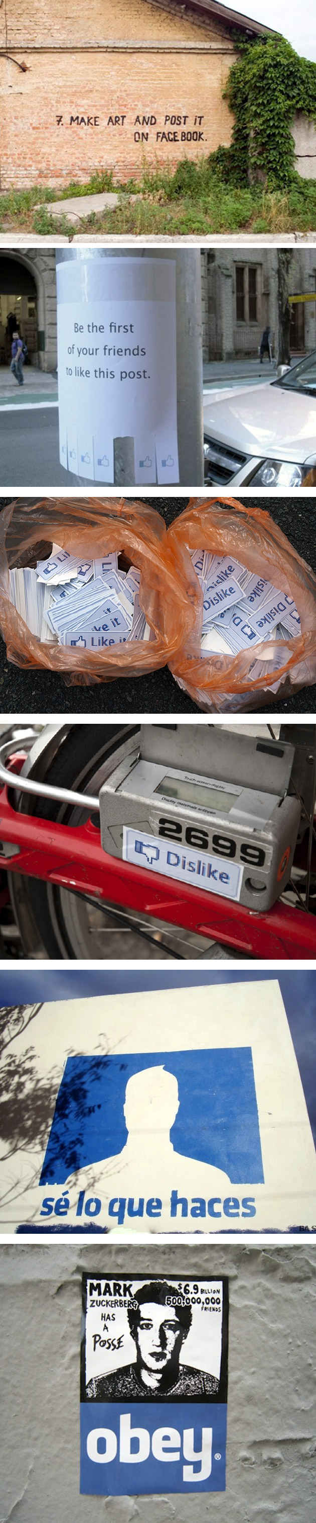 Cette semaine c'était la fête à Facebook, du coup notre graph(art)iste-maison prend sa plume et fait le tour des initiatives street-art les plus remarquables qui gravitent autour de la thématique des réseaux sociaux. Bref, c'est vendredi et donc c'est graphisme !